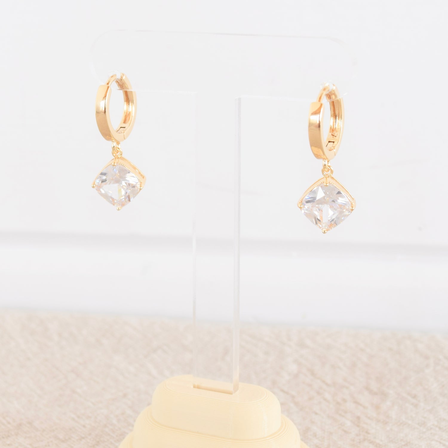 Gold Square Zircon Huggie