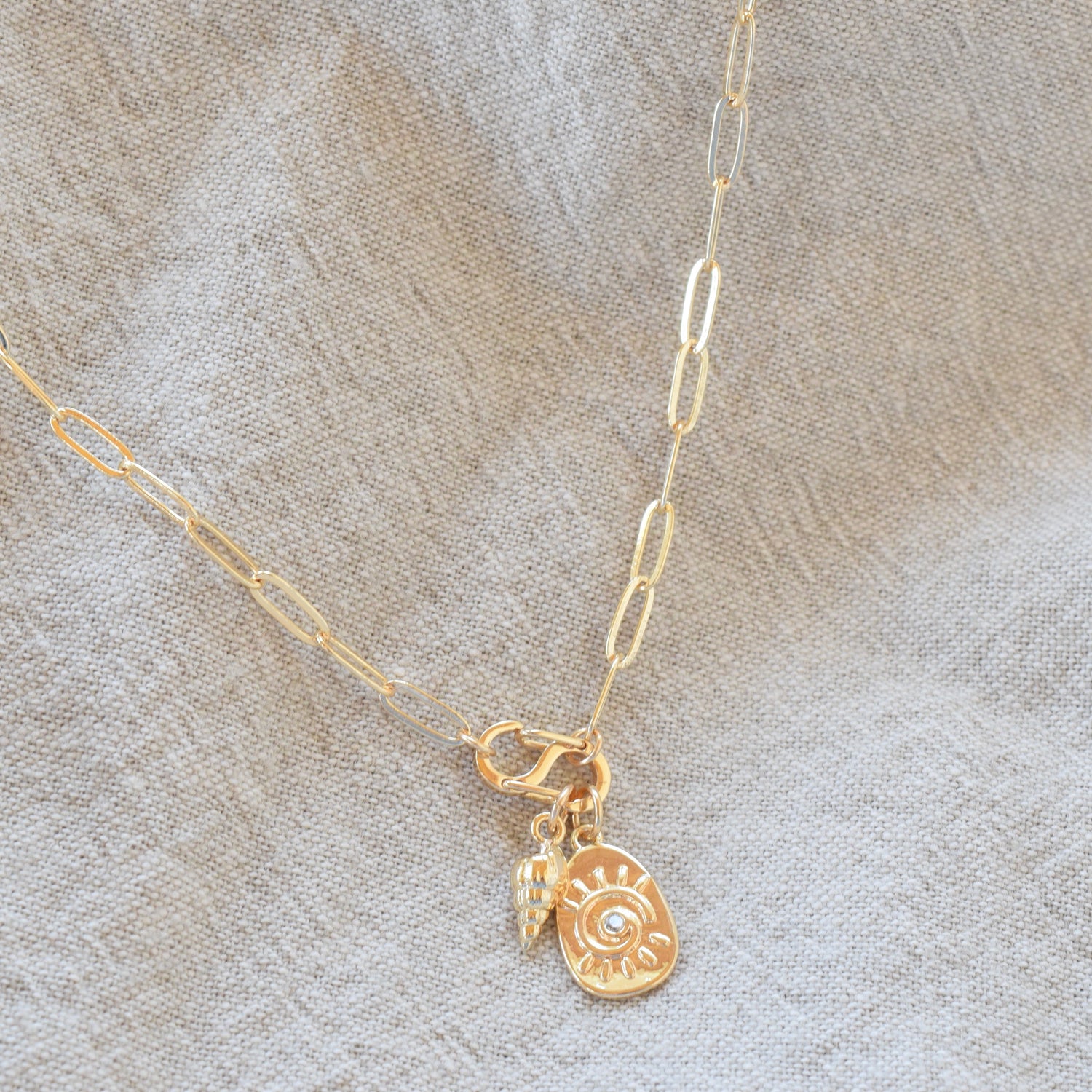 18k gold plated charm necklace with front facing clasp designed for all à la mer necklace charms.